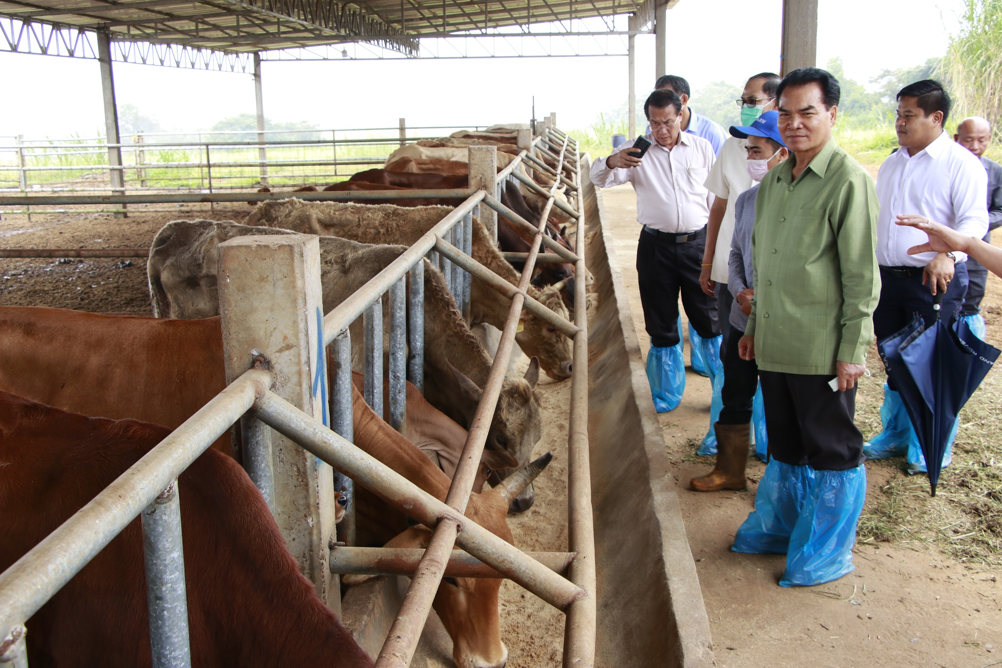 ໃນວັນທີ 17 ຕຸລາ 2023 ທີ່ຜ່ານມານີ້ ທ່ານ ປອ ເພັດ ພົມພີພັກ ລັດຖະມົນຕີ ກະຊວງກະສິກຳ ແລະ ປ່າໄມ້, ທ່ານ ວັນໄຊ ຟອງສະຫວັນ ເຈົ້າແຂວງໆ ຄຳມ່ວນ ພ້ອມດ້ວຍຄະນະ ລົງຊຸກຍູ້ການຜະລິດກະສິກຳ ຢູ່ເມືອງ ປາກຊ່ອງ ແຂວງ ຈຳປາສັກ ໂດຍການຕ້ອນຮັບຂອງທ່ານ ປອ ສົມລິດ ວິລະວົງ ຫົວໜ້າພະແນກກະສິກຳ ແລະ ປ່າໄມ້ ແຂວງ ຈຳປາສັກ ພ້ອມດ້ວຍຫົວໜ້າຫ້ອງການກະສິກຳ ແລະ ປ່າໄມ້ ເມືອງ ປາກຊ່ອງ ແລະ ພາກສ່ວນທີ່ກ່ຽວຂ້ອງໃຫ້ການຕ້ອນຮັບຢ່າງອົບອຸ່ນ. ໃນການລົງເຄື່ອນໄຫວໃນຄັ້ງນີ້ ຄະນະດັ່ງກ່າວ ກໍ່ໄດ້ລົງຢ້ຽມຢາມ ບໍລິສັດລາວຟາມ ເປັນຟາມລ້ຽງງົວພັນຊີ້ນ ຂອງທ່ານ ດາວັນ ບຸບຜາພັນ ເຊິ່ງຕັ້ງຢູ່ເຂດຄຸ້ມຄອງຂອງບ້ານ ຫ້ວຍກອງ ກຸ່ມທີ 9 ເມືອງປາກຊ່ອງ ແຂວງຈຳປາສັກ ຫ່າງຈາກເມືອງປາກຊ່ອງໄປທາງທິດຕາເວັນອອກຊ່ຽງໃຕ້ປະມານ 33 ກິໂລແມັດ ເຊິ່ງມີເນື້ອທີ່ດິນທັງໝົດ 113 ເຮັກຕາ ໃນນັ້ນເນື້ອທີ່ດິນປູກຫຍ້າ 90 ເຮັກຕາ, ຊື່ງເປັນຟາມລ້ຽງງົວພັນຊີ້ນ ມີ 5 ສາຍພັນ ເຊັ່ນ: ພັນແອງກັຊ, ຊາລູເລ, ບຣາມັນ, ພັນບັກຄິວ, ພັນບິຊມາດເຕີ້, ປັດຈຸບັນມີງົວທັງໝົດ 1.120 ກວ່າໂຕ, ໃນຟາມດັ່ງກ່າວໄດ້ມີວິຊາການດ້ານສັດຕະວະແພດ, ນັກວິຊາການດ້ານການປະສົມພັນທຽມ ແລະ ພະນັກງານພາຍໃນຟາມລ້ຽງງົວ, ສຳລັບການໃຫ້ອາຫານງົວແມ່ນ 3 ຄາບຄື: ຕອນເຊົ້າໃຫ້ຮຳອ່ອນ, ທ່ຽງແລະແລງຈະໃຫ້ຫຍ້າບົດ ພ້ອມນີ້ທາງຟາມຫຍັງມີຫ້ອງແລັບ ເພື່ອຜະລິດນ້ຳເຊືິ້ອ, ງົວ ແລະ ແຜນໃນຕໍ່ໜ້າທາງຟາມຈະຂະຫຍາຍຟາມຕື່ມຢູ່ທີ່ນະຄອນຫຼວງວຽງຈັນ, ໃນການຜະລິດລູກງົວ, ການຮິດນ້ຳເຊື່ອເພື່ອບໍລິການປະສົມທຽມໃຫ້ປະຊາຊົນ ພ້ອມທັງສ້າງເປັນຟາມຕົວແບບ ໃນການລ້ຽງງົວເປັນສີນຄ້າ, ໃນການລົງຢ້ຽມຢາມລາວຟາມໃນຄັ້ງນີ້ ທ່ານ ລັດຖະມົນຕິກະຊວງກະສິກຳ ແລະ ປ່າໄມ້ ໄດ້ຍ້ອງຍໍຊົມເຊີຍ ແລະ ໃຫ້ສຶບຕໍ່ຂະຫຍາຍໃຫ້ຫຼາຍກວ່າເກົ່າ, ສ້າງສູດອາຫານທີ່ເປັນຂອງຟາມເອງ, ສ້າງບຸກຂະລາກອນດ້ານວິຊາການຕ່າງໆ ເພຶື່ອຂະຫຍາຍແນວພັນງົວພາຍໃນຟາມ ແລະ ພ້ອມທັງສົ່ງເສີມປະຊາຊົນລ້ຽງ.